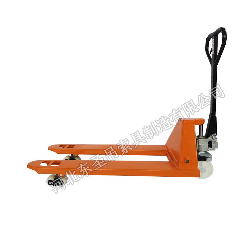 咨询电话:13933276606 手动液压叉车 是一种以液压系统驱动链轮轴带动货叉升降进行堆垛和搬运的手动两用搬运车辆,属于五金工具35个大分类中的手动搬运工具范畴,与手动搬运车辆为