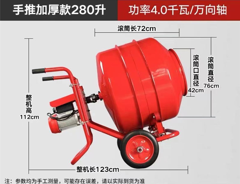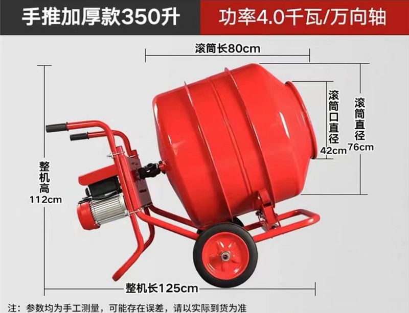 手推卧式小型搅拌机有280升、350升、400升、600升、800升共5种规格。
